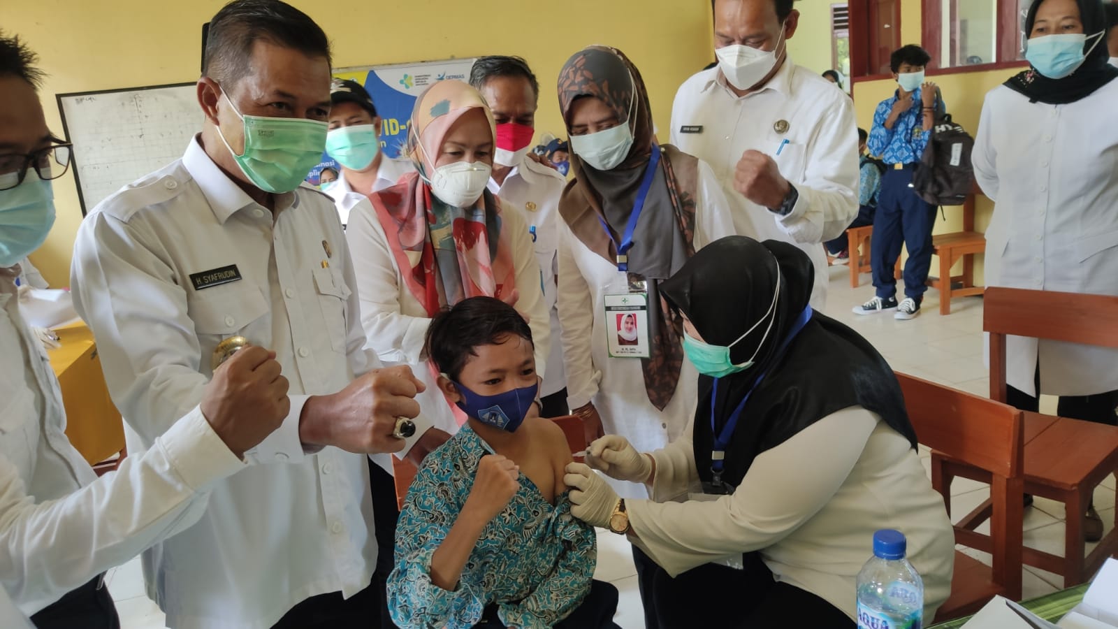 Siswa-siswi SMPN 5 Kota Serang di vaksin.