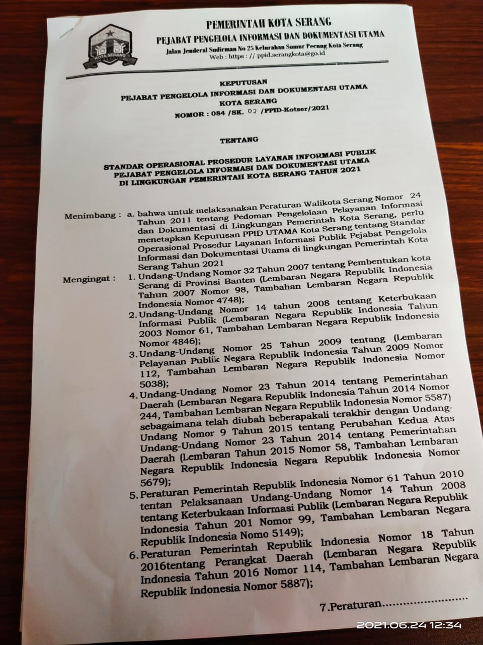 Keputusan PPID Utama Kota Serang: SOP Layanan...