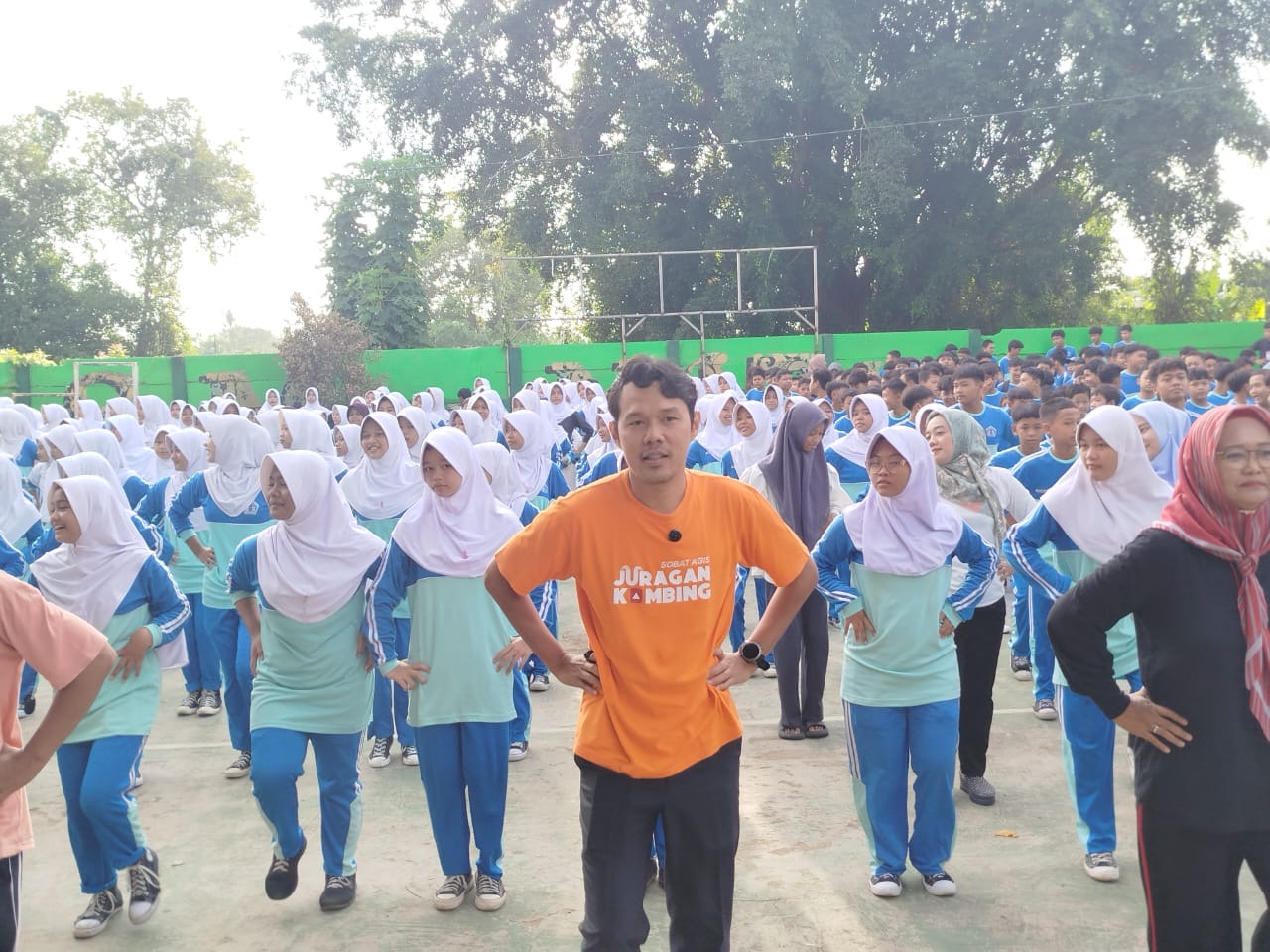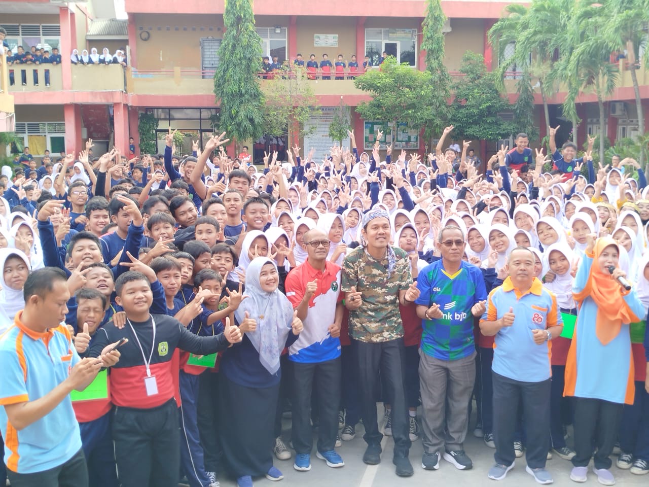 Setelah puas melihat berbagai karya seni, Agis melanjutkan kegiatan di SMPN 17 dengan mengikuti senam pagi bersama siswa dan guru. Ia menekankan pentingnya tubuh yang bugar agar siswa lebih mudah menyerap pembelajaran di sekolah.